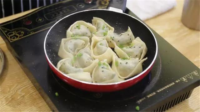 ⑤將餛飩放入平底鍋內,餛飩與餛飩之間盡量能留少量空隙,這樣煎出來的餛飩才不會黏在一起;