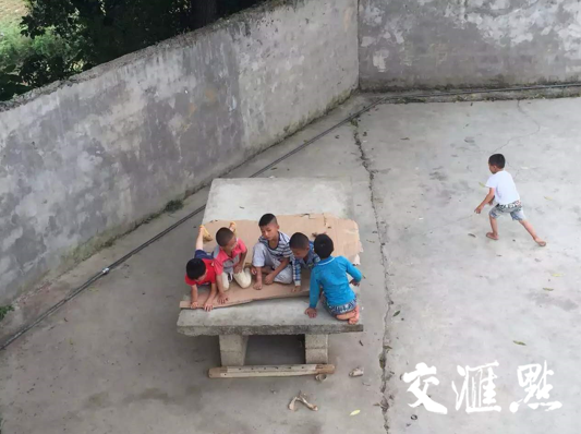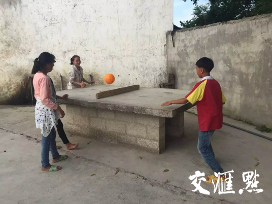 孩子們在水泥砌的乒乓球臺上玩耍。圖片由采訪對象提供